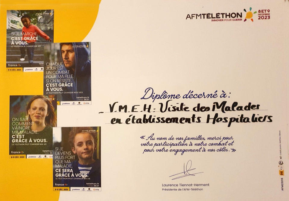 Cet exploit généreux témoigne du dynamisme de la communauté locale et de l’esprit solidaire qui unit les habitants de la région. La réussite de cet événement est incontestable. La salle choisie pour le loto s’est révélée trop petite pour accueillir tous les participants enthousiastes. Cela démontre non seulement l’ampleur de la mobilisation citoyenne, mais aussi le besoin croissant de soutenir des initiatives caritatives dans la région. La ville de Mauguio satisfaite de l’engagement sur sa commune de l’association VMEH34, section locale Petite Camargue, a délivré un « diplôme » adressé par la présidente de l’AFM Téléthon.